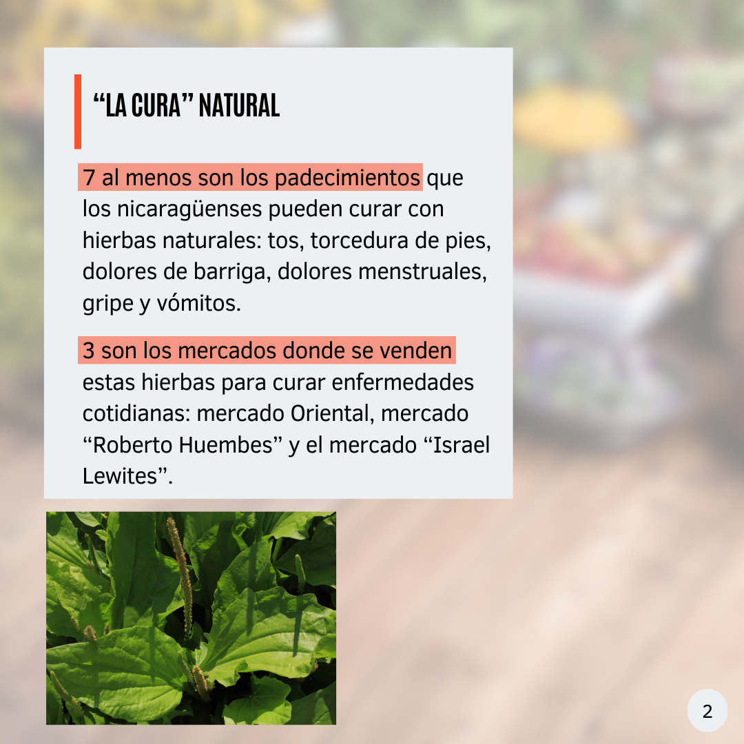 Para este reporte, visitamos algunos tramos del mercado Oriental, específicamente en el galerón de los pescados, detrás de dónde fue la azucarera. Ahí se encuentra a una de las pocas propietarias de tramos de ese mercado, dónde se comercializan estas hierbas naturales. Pidió que la llamaran Ramona. “Si, aquí está viniendo mucha a gente a buscar las hierbitas sanadoras”, comentó.