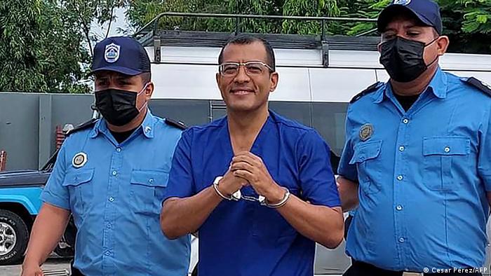 «Fue muy duro verla en fotos después de más de 400 días, esposada como si fuera una delincuente”, declaró a DW César Dubois, el marido de Suyen Barahona, la opositora de figura menuda que adelgazó 18 kilos en prisión. Dubois abandonó Nicaragua con el pequeño hijo de ambos para resguardar sus vidas.