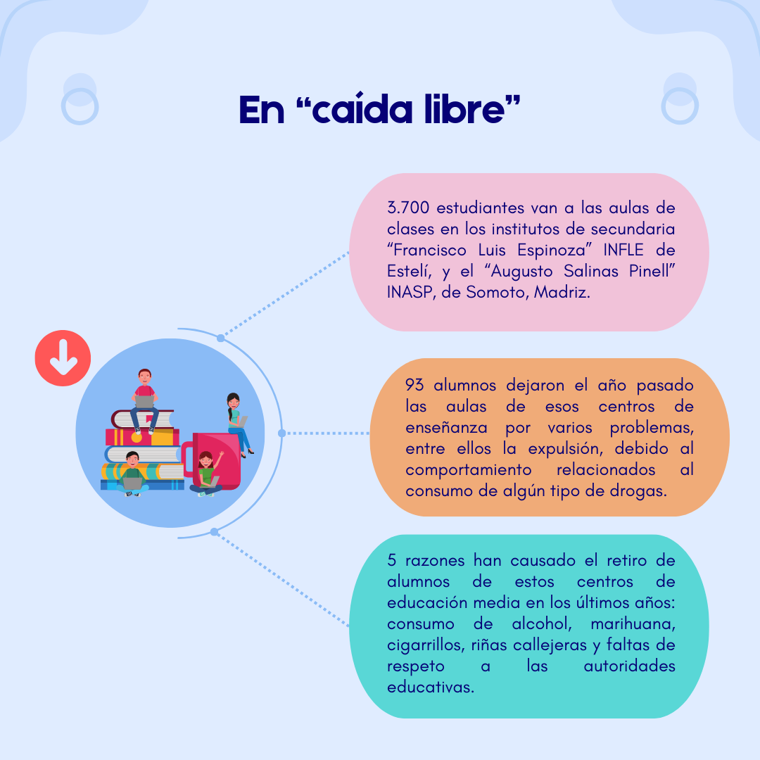 El año pasado, estos casos se presentaron con mucha frecuencia en el INFLE, cuyas instalaciones se ubican en la parte suroeste urbana de la ciudad de Estelí. Varios tutores elaboraron informes a los directores donde describían actos de indisciplina de algunos alumnos entre las que se contaban riñas entre alumnos, consumo de cigarrillos electrónicos, de tabaco y marihuana durante los cambios de clases, recreo, comienzo y fin del turno.