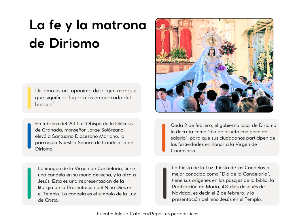 La alcaldía orteguista del municipio de Diriomo del departamento de Granada, realizó una serie de actividades para celebrar las fiestas patronales de la Virgen de Candelaria, la misma imagen que por órdenes de su mismo partido, fue confinada en su templo, una contradicción que solo ellos entienden.