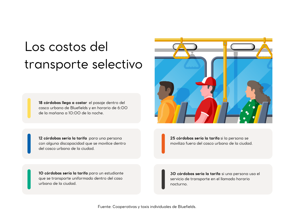 Recordaron que existe una Ordenanza Municipal que establece una multa y sanción a aquellos transportistas que incurren en faltas al brindar el servicio a usuarios. Señala el documento que las quejas pueden ser interpuestas en las oficinas de la Dirección de Transporte de la Alcaldía de Bluefields, el usuario debe llevar el número de placa, socio, color del vehículo y nombre del cadete de acuerdo al carnet de identificación que se debe portar visiblemente.