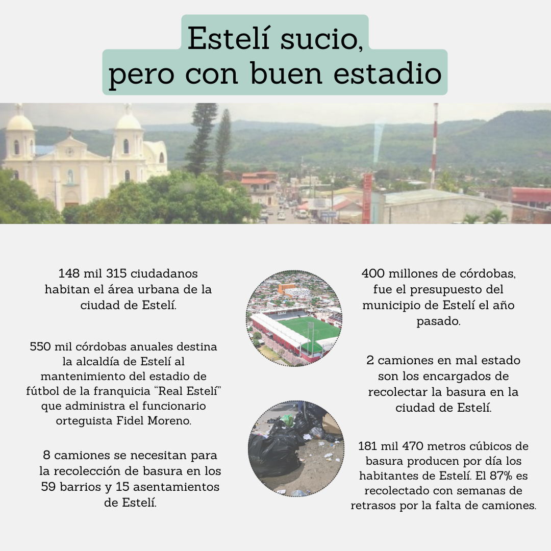Señalaron que el presupuesto incluía adoquinado y reparación de calles, reparación de caminos rurales y hasta la construcción de un área del estadio de fútbol Independencia, al que las autoridades edilicias le destinan cada año más de 550 mil córdobas. El estadio es la casa oficial del “Tren del Norte” y para nadie es un secreto en esta localidad, que el dueño de la franquicia del equipo de fútbol, es el Secretario General de la Alcaldía de Managua, el funcionario orteguista, Fidel Moreno Briones.