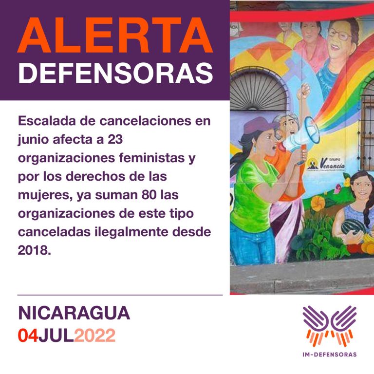 Desde la IM-Defensoras no nos cansaremos de reiterar el grave impacto que estas cancelaciones tienen sobre los derechos de las mujeres nicaragüenses, dejándolas en una situación de mayor vulnerabilidad y exposición a la violencia y a la vulneración de sus derechos fundamentales. Esto en un país donde al menos 71 mujeres fueron víctimas de femicidio en 2021 — a los que se agregan los 27 femicidios registrados durante el año en curso; donde, según datos oficiales, durante ese mismo año 2021, más de 8 mil mujeres denunciaron haber sufrido algún tipo de violencia intrafamiliar y cerca de 5 mil denunciaron haber sido víctimas de violencia sexual; donde miles de mujeres trabajan en maquilas de capital trasnacional bajo condiciones de explotación y extrema precariedad; y donde la interrupción del embarazo está completamente penalizada desde 2006, tras el pacto de Daniel Ortega con la jerarquía católica.