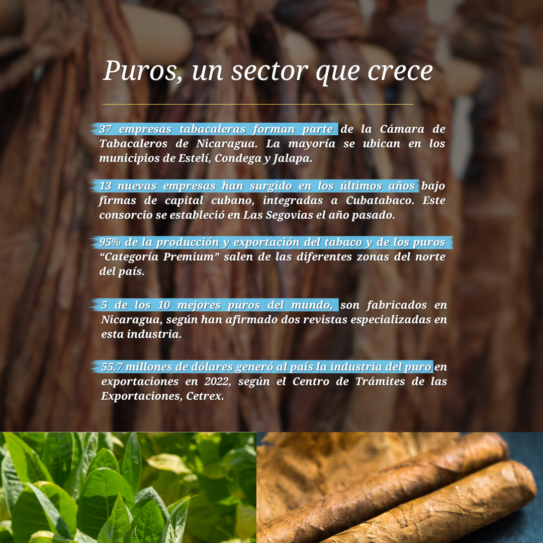 Estas empresas en la actualidad cuentan con extensas fincas dedicadas al cultivo de la hoja de tabaco y que son parte de unas 35 grandes fábricas que manejan el proceso y producción de puros. Emplean entre 18 mil y 25 mil personas, en su gran mayoría trabajadores locales.