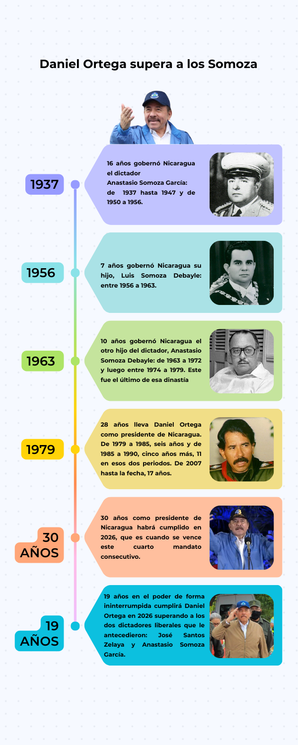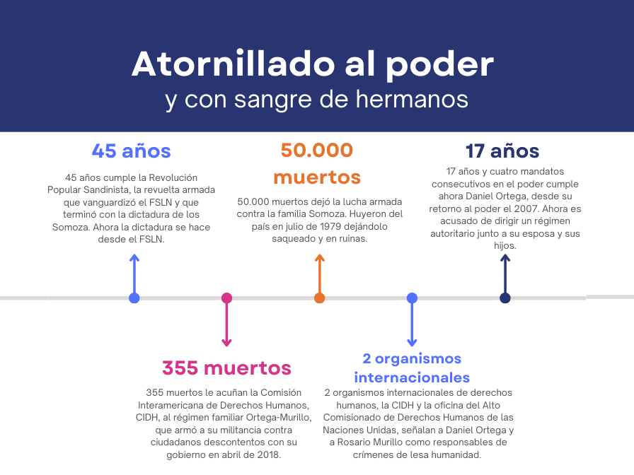De acuerdo con el analista consultado, la dictadura está abusando del terror de las armas y la violencia política por medio de la policía del mismo modo que lo hizo la familia Somoza “con la diferencia de que los Ortega-Murillo, en su guerra terrorista contra la oposición, están atacando a sus propios miembros y sus familias”.