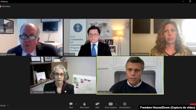 «Latinoamérica está en riesgo, está bajo amenaza», afirmó el activista y exprisionero político venezolano, Leopoldo López, durante un panel de expertos durante la presentación del informe de Freedom House.