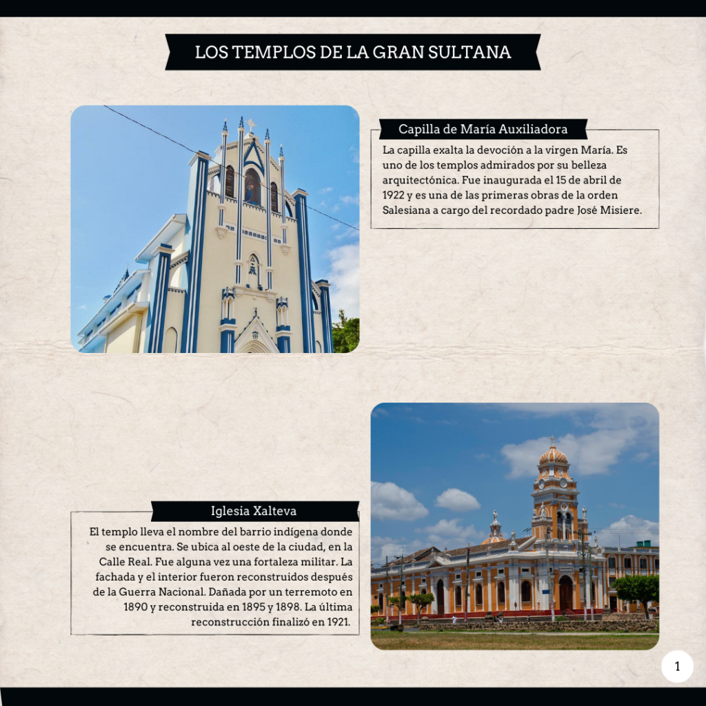 La capilla María Auxiliadora, es uno de los templos admirados por su belleza arquitectónica. Abrió sus puertas el 15 de abril de 1922. Este templo fue construido para honrar a la Virgen María, siendo una de las primeras obras en Nicaragua de la orden Salesiana, a cargo del recordado padre José Misiere.
