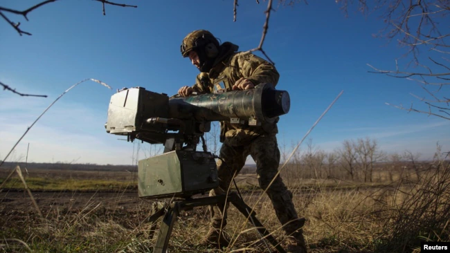 Un militar ucraniano instala un lanzador de misiles guiados antitanque Stugna-P en primera línea, en la región de Donetsk, el 3 de enero de 2023.