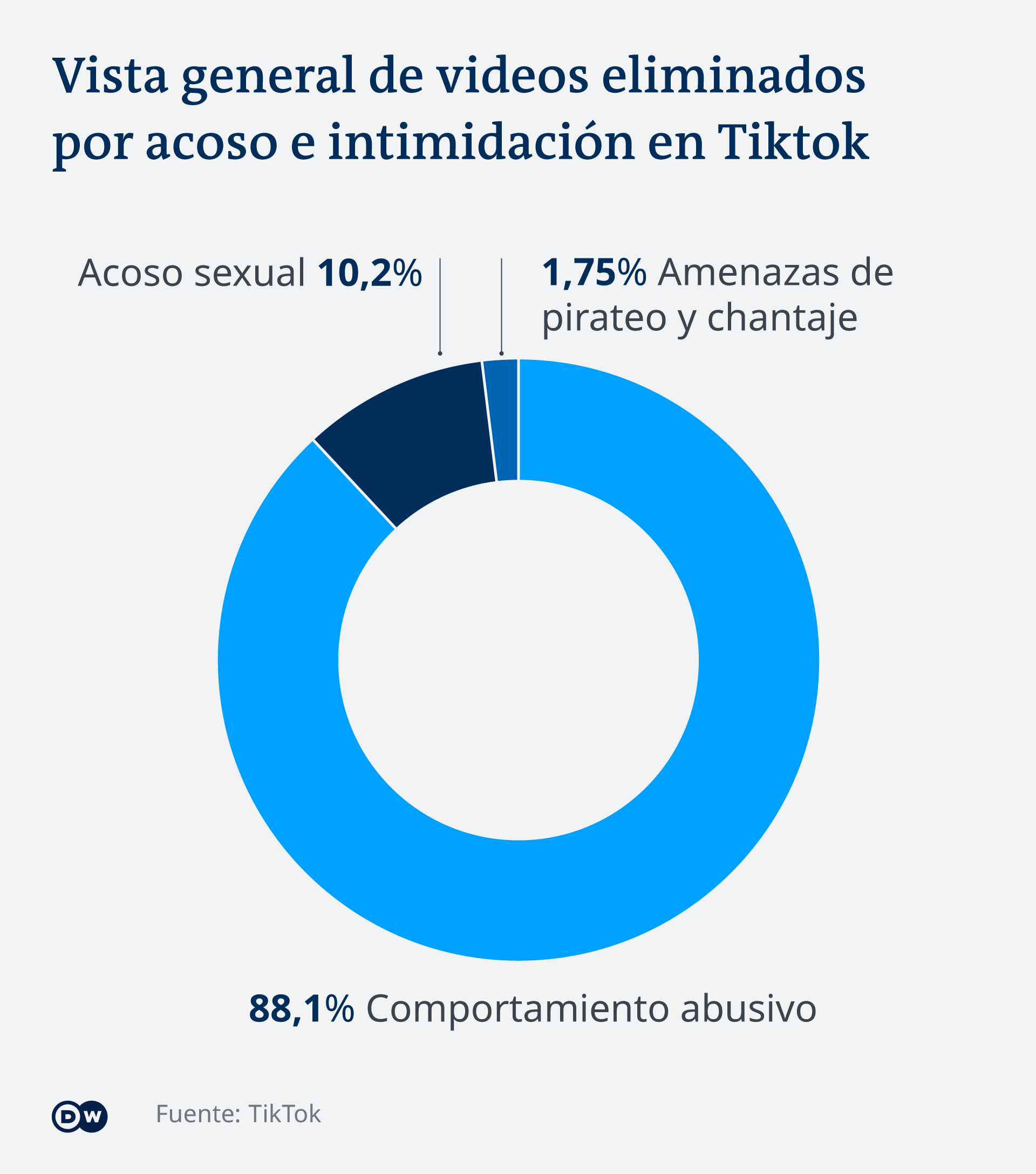 Según el Informe de cumplimiento de las Normas de la comunidad de TikTok, del período 1 de abril al 30 de junio de 2022, un 10,2% de los videos eliminados por acoso e intimidación, correspondieron a la categoría de abuso sexual.