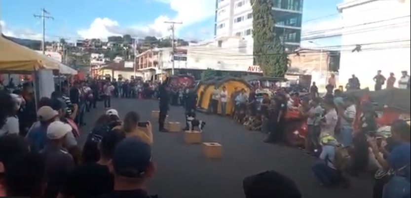 Asedio en extremo: régimen exhibe técnica canina y habilidades de personal del SPN en las afueras de la Catedral de Matagalpa