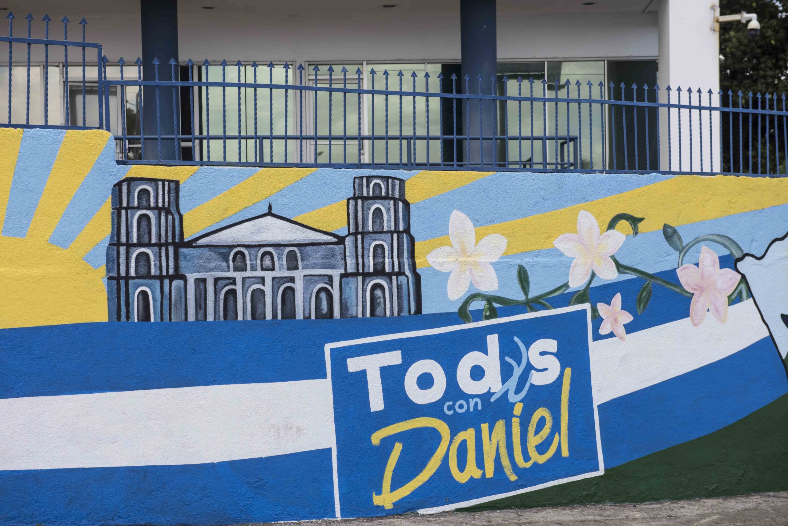 En la fachada del Parlamento nicaragüense hay dos banderas y un cartel grande. Una del gobernante Frente Sandinista de Liberación…