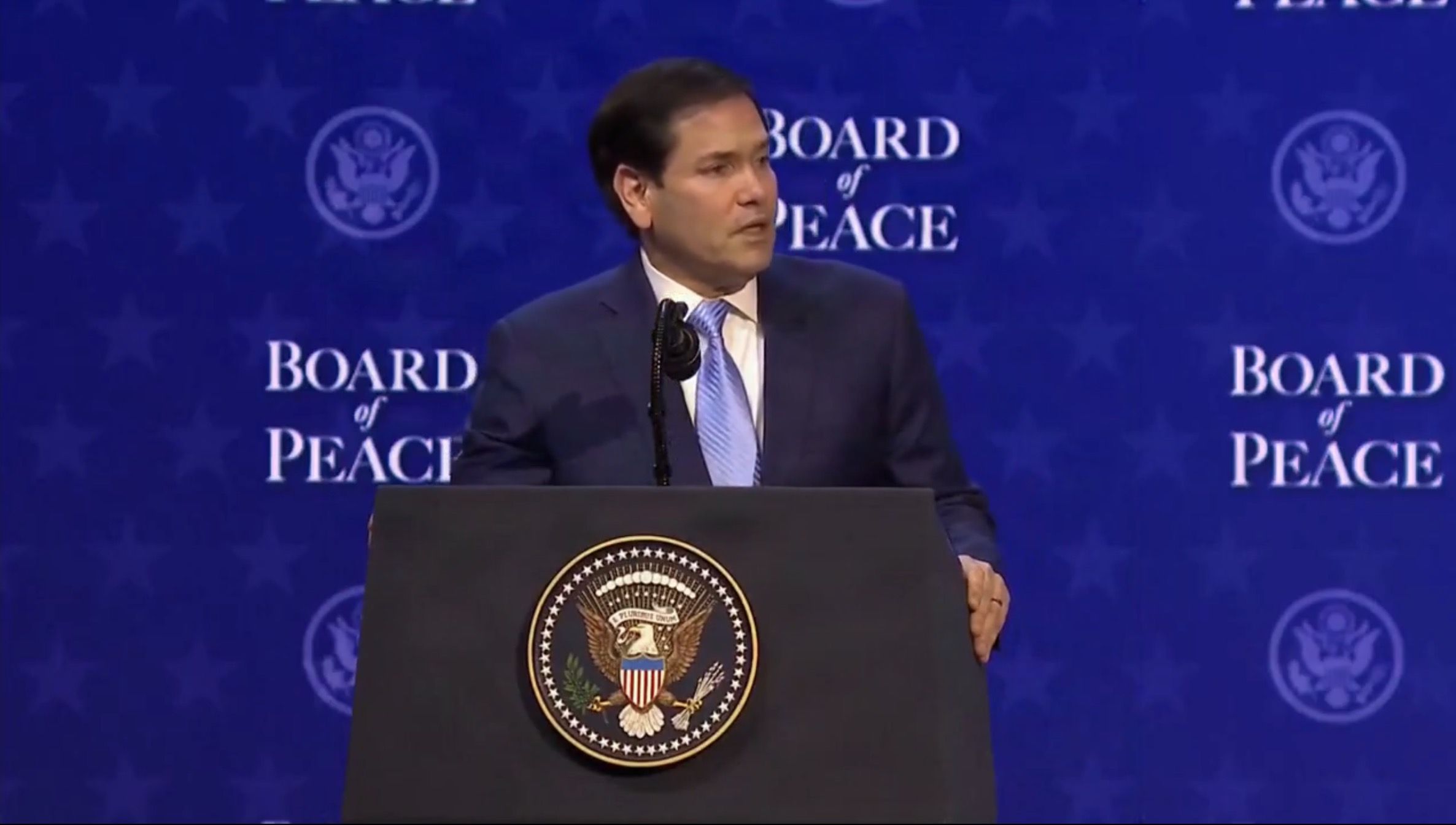 Declaraciones del secretario de Estado de EE. UU. Marco Rubio durante la ceremonia de firma de la carta de la Junta de Paz