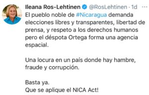 […] Le puede Interesar: Ileana Ros-Lehtineng, pide que se le aplique Nica-Act a Ortega. […]