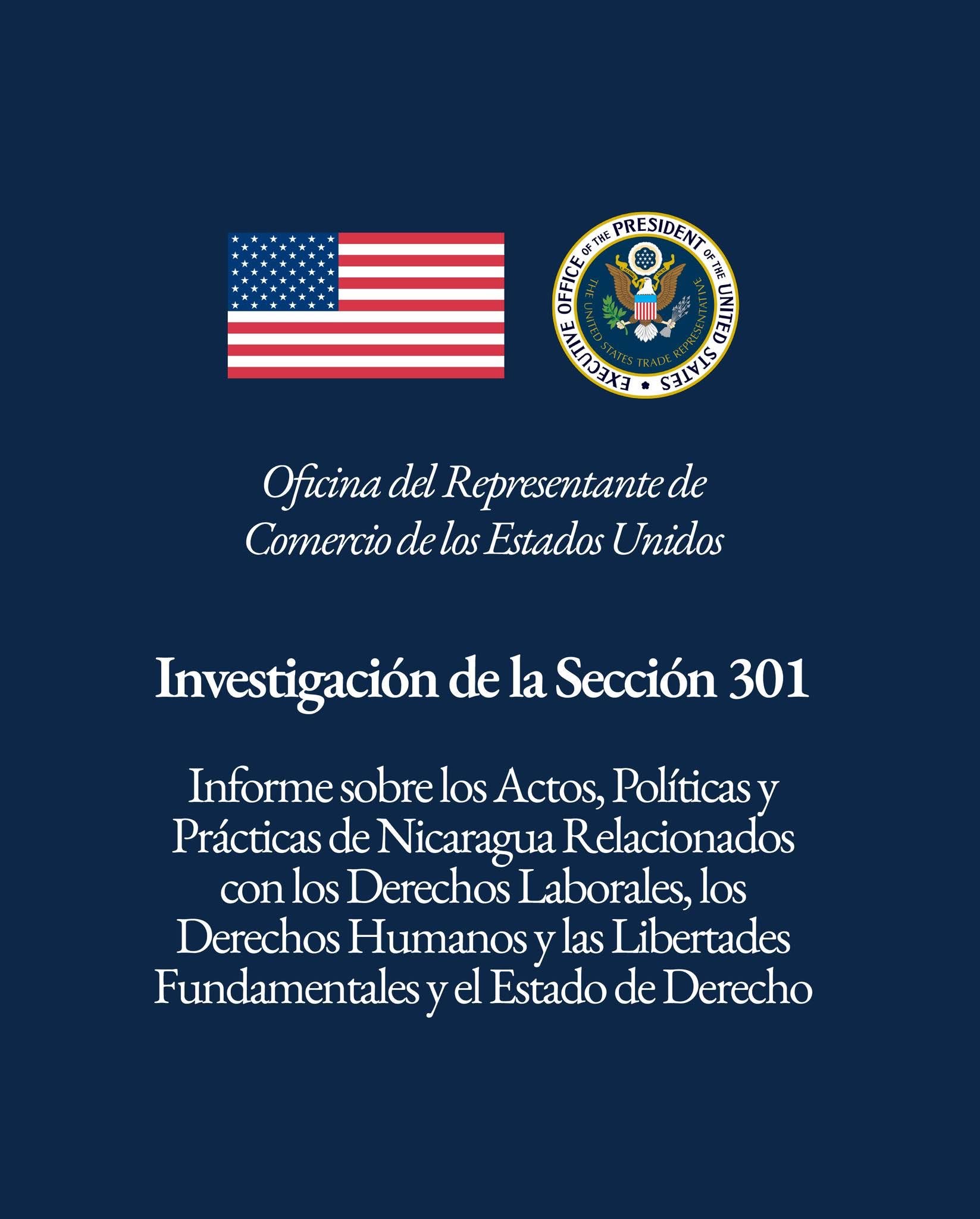 La investigación e Informe de la Sección 301 de la USTR establece hallazgos sobre cómo las acciones, políticas y prácticas represivas de Nicaragua con respecto a los derechos laborales, los derechos humanos y las libertades fundamentales y el desmantelamiento de la tutela del Estado de Derecho contra acciones arbitrarias, imponen una carga o restringen el comercio de EE. UU. en varios aspectos.